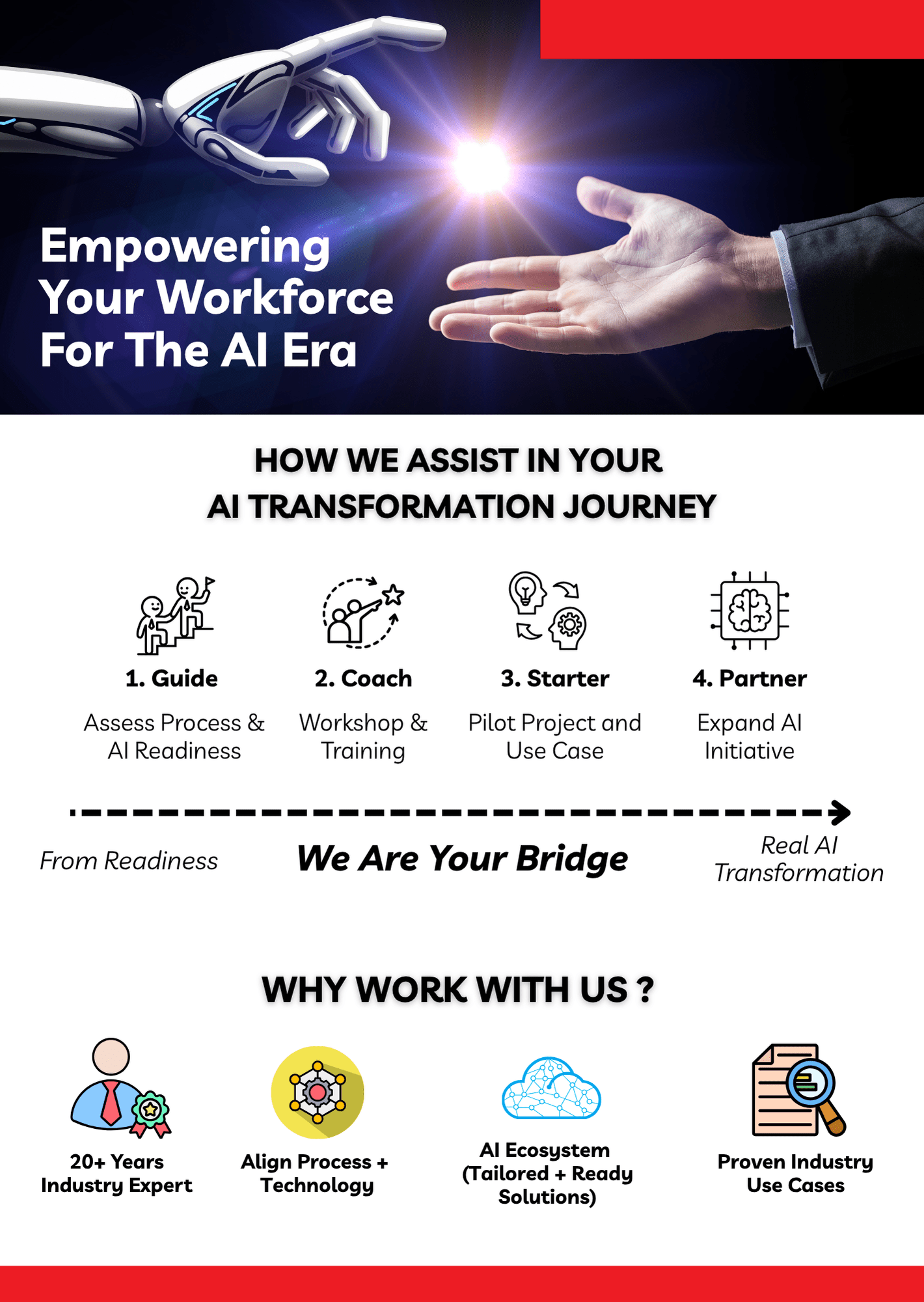 AI Enquiry Form Full Name Company Name Job Title / Designation Email Contact Number What are you interested in? (Tick all that apply) AI Training Programs (Leaders, HODs, Sales/Marketing, Business Writing) AI-Powered Solutions (HR, Finance, Marketing, Industry AI- Vision) AI Advisory (needs analysis, tool recommendations, custom solutions) Your priority or goal Leadership & culture change Improve team productivity / reduce cost Enhance sales & marketing results Explore automation / digital transformation Estimated budget Below RM10,000 RM10,000 – RM30,000 RM30,000 – RM100,000 Above RM100,000 Prefer not to say Additional notes / questions I agree to the collection and use of my information in accordance with Elev8 Asia’s Privacy Policy, and consent to be contacted regarding my enquiry or related services. Send